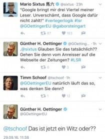Es ist immer erfreulich, wenn sich ein Politiker der öffentlichen Diskussion stellt. Gestern Abend hat EU-Digitalkommissar Günther Oettinger auf Twitter versucht, sein geplantes Leistungsschutzrecht für Presseverleger zu verteidigen. Was er da jedoch von sich gab, lässt einen nur noch verzweifeln.